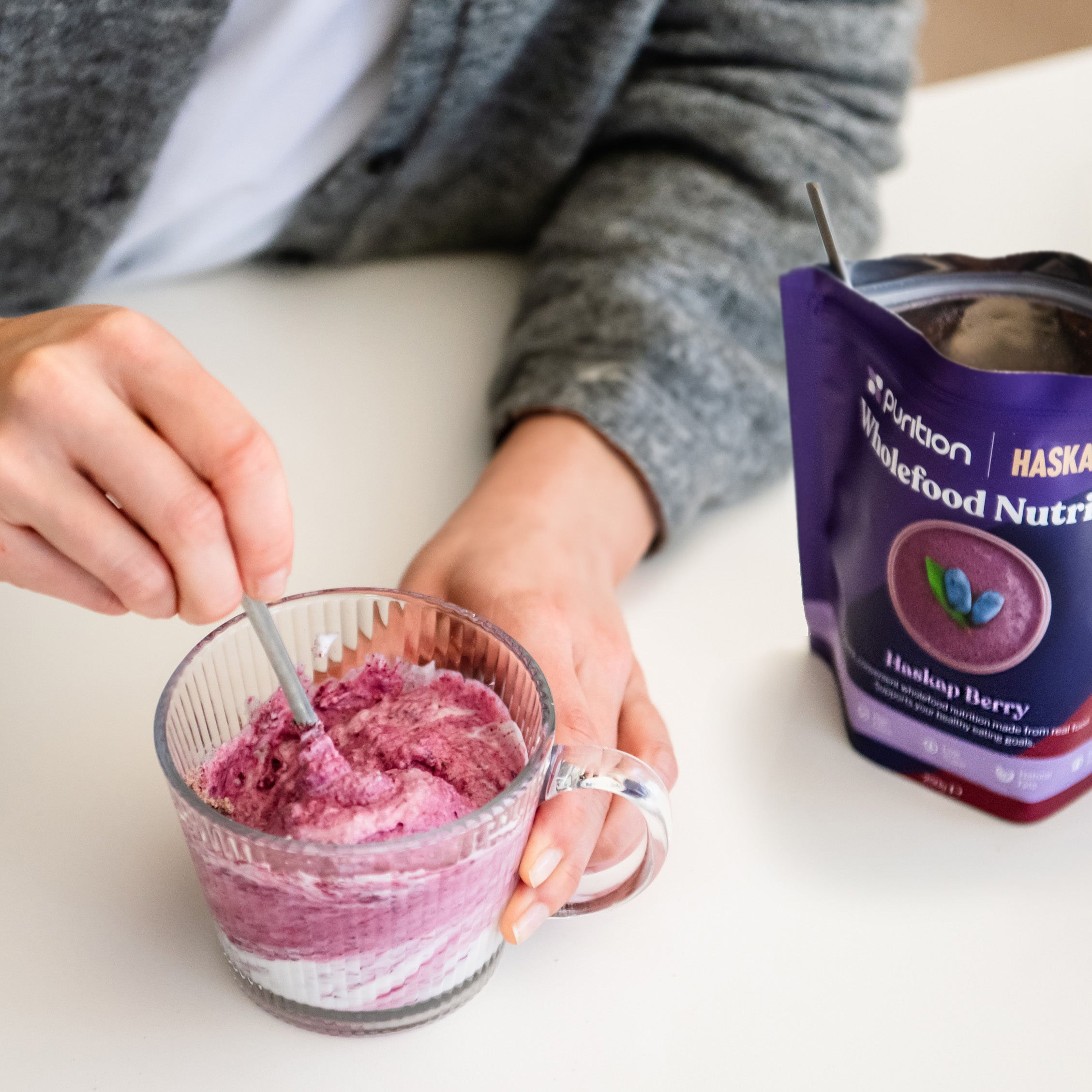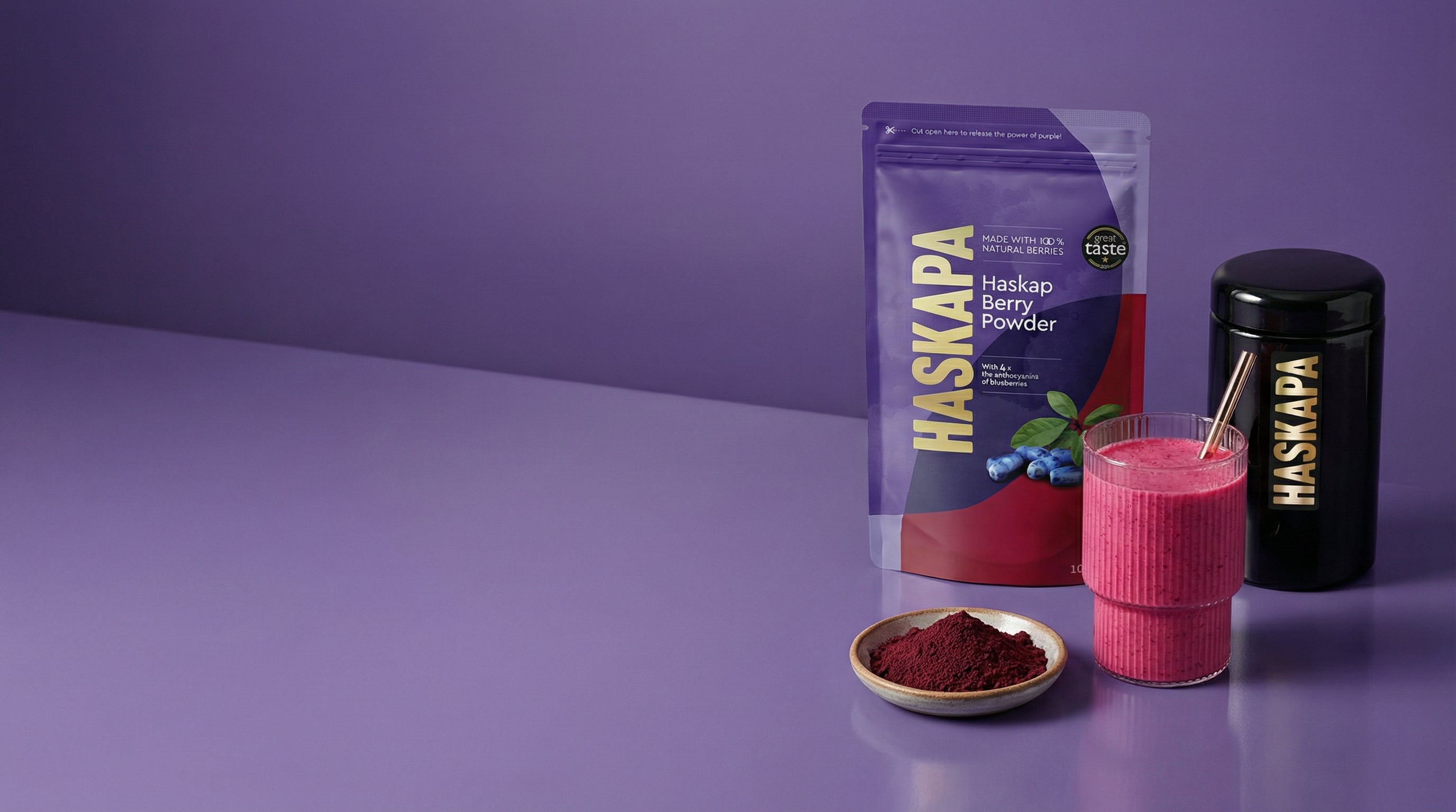 Haskapa is a rich, tangy‑sweet berry powder bursting with natural antioxidants and vitamin C, ready to swirl into your morning smoothie, yogurt or oats in seconds. One spoon creates a big flavour – an effortless superberry upgrade to your everyday routine.