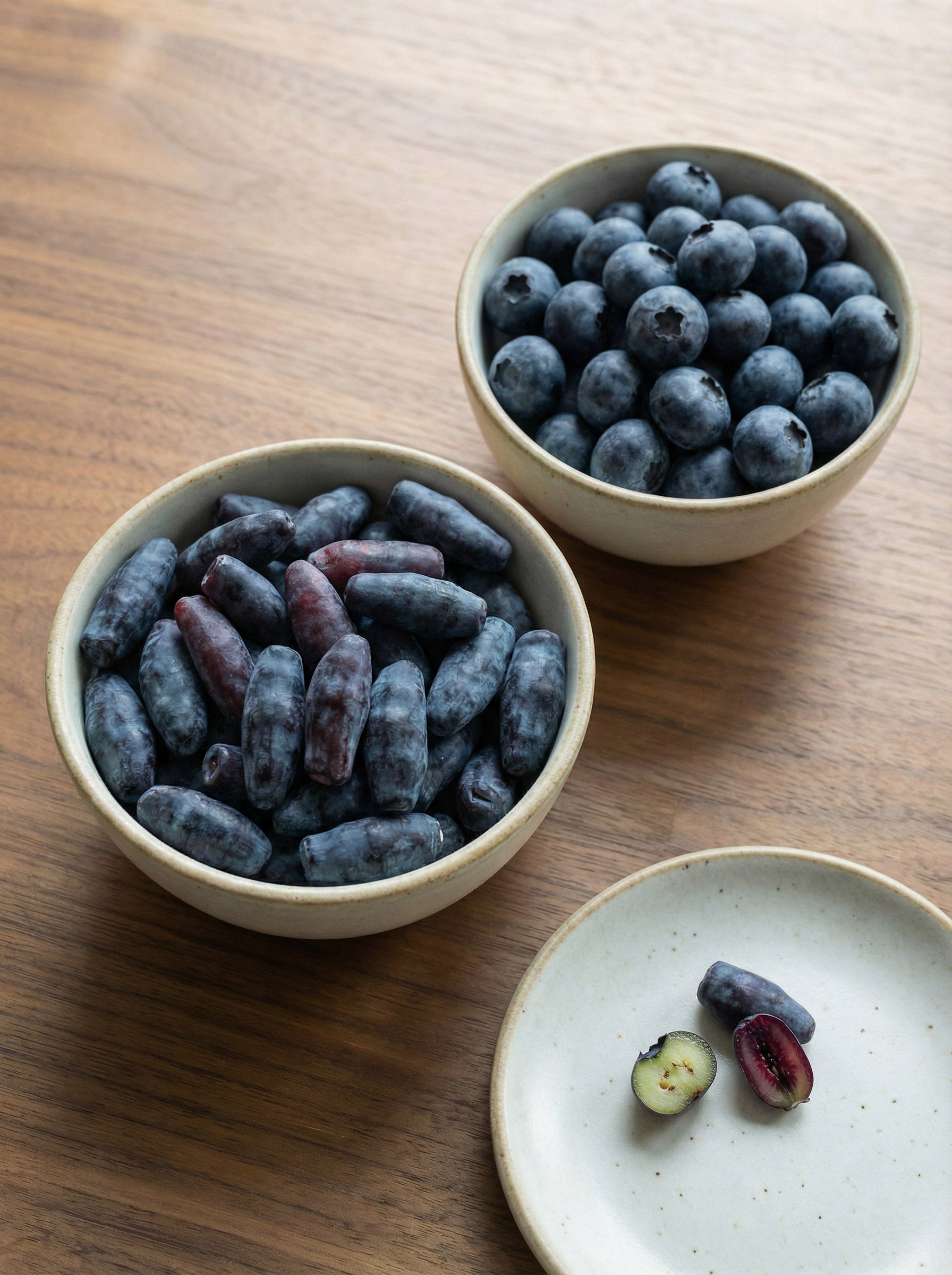 Though similar in appearance to an elongated blueberry, the haskap berry is a member of the honeysuckle family not the blueberry family .